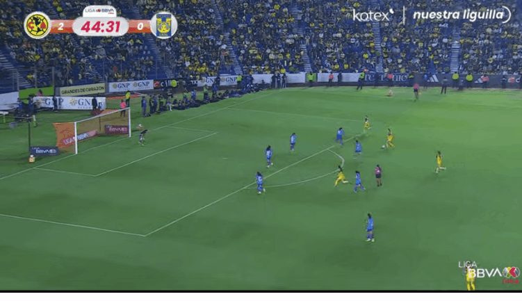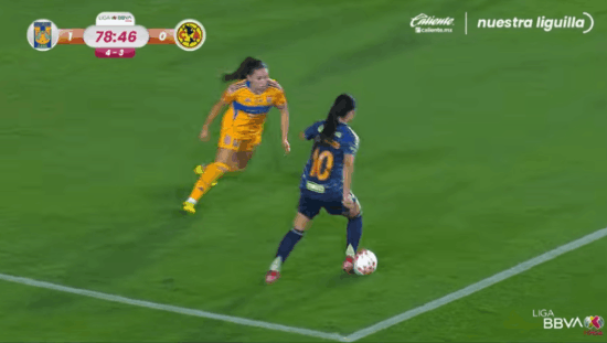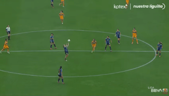 With the two-goal lead, America eased up on their press a bit, implementing it more selectively. This allowed Tigres to get a bit more possession and offensive threat, but they still failed to actually threaten America’s goal. The best opportunity a tricky volley put over the bar by Barbara Olivieri.