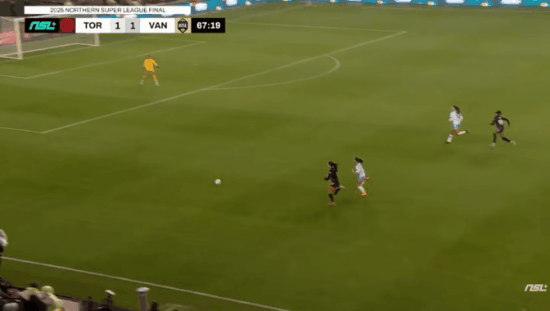 Toronto continued to keep a higher line and pressure Vancouver to create attacking chances. Then, in the 68th minute from a Vancouver Rise goal kick, it all came undone. An overly aggressive step took Zoe Burns out of position, and Vancouver were able to send Holly Ward down the left wing. Latifah Abdu made an important run up the middle to occupy Pickett the other, more central defenders. Burns busted her ass to get back, but Ward won the footrace, cut into the box, and squeezed her shot past Cota-Yarde into the far side netting. From goal kick to goal, the Rise took 7 touches. Just like that, it was 2-1 to Vancouver.