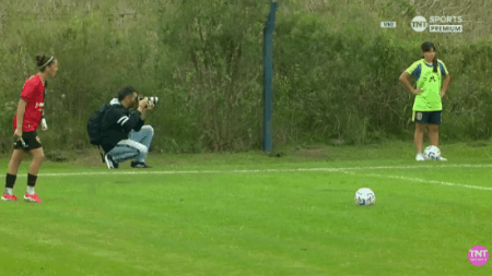 46’ The second half started with some pitch-side interference, but not by players or fans. Instead, some film equipment is left by the Win Sports crew.