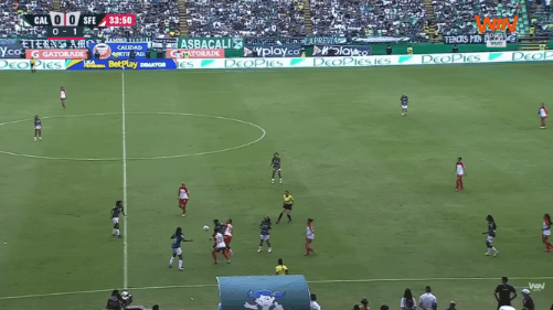 80’ As the second half progressed, Santa Fe got a little more conservative to maintain their lead, and Cali got more sustained attacking pressure. In the 80’ a ball is laid off to Paola Garcia, whose blast from distance goes just wide.