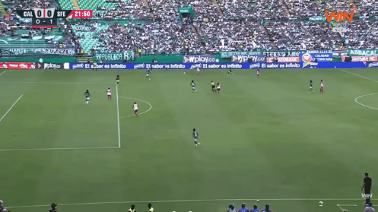 In the 59th minute, the ref would award a penalty to Cali, but VAR would overturn the call, as replays showed the ball did not hit a Santa Fe hand in the box. Also, there was an offside in buildup.