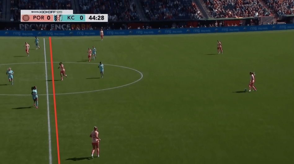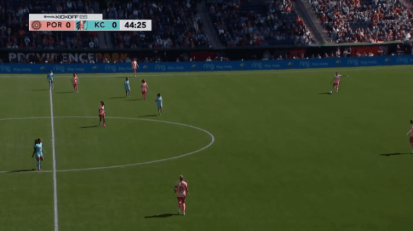 Perry massively overhits the pass, but it’s a reflection of what the Thorns will employ at various stages in the match.
