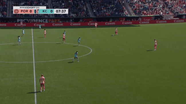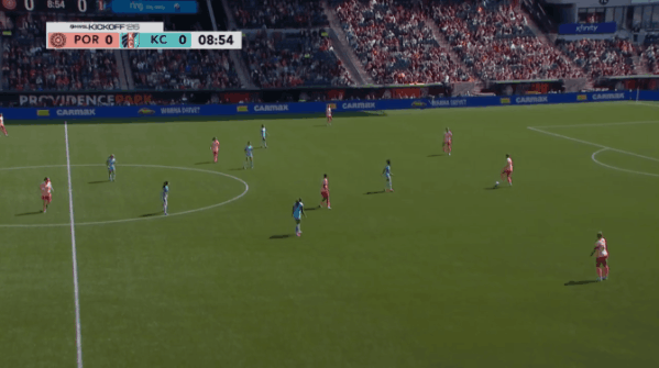 Frankly, I’ve been waiting on the Thorns to integrate more direct play like this into their attack. The Thorns have just been very poor when they have to build out of the back. Some of that is because the Thorns coaching staff hasn’t done a great job of establishing the movement patterns necessary to build from the back. But the other factor is that none of the defenders (central or wide) are great at intricate passes, especially when under pressure. I do think they’ve improved this offseason, but they’re not elite at passing.